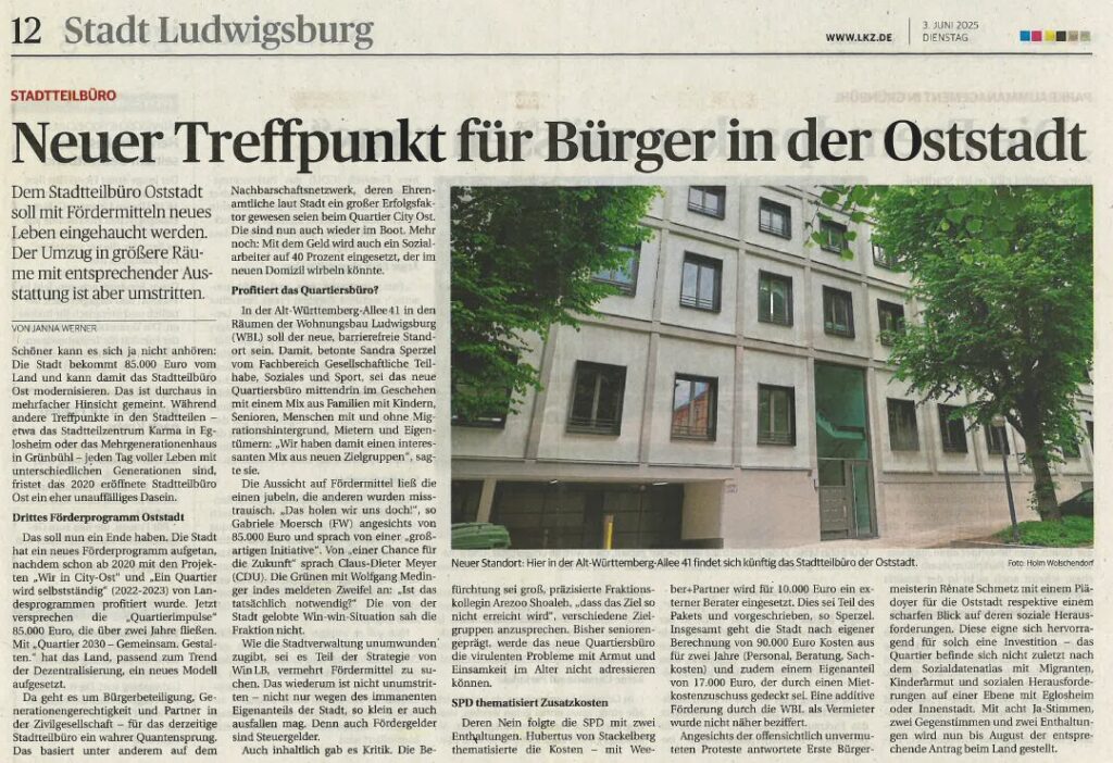 Neuer Treffpunkt für Bürger in der Oststadt (LKZ, 03.06.25)